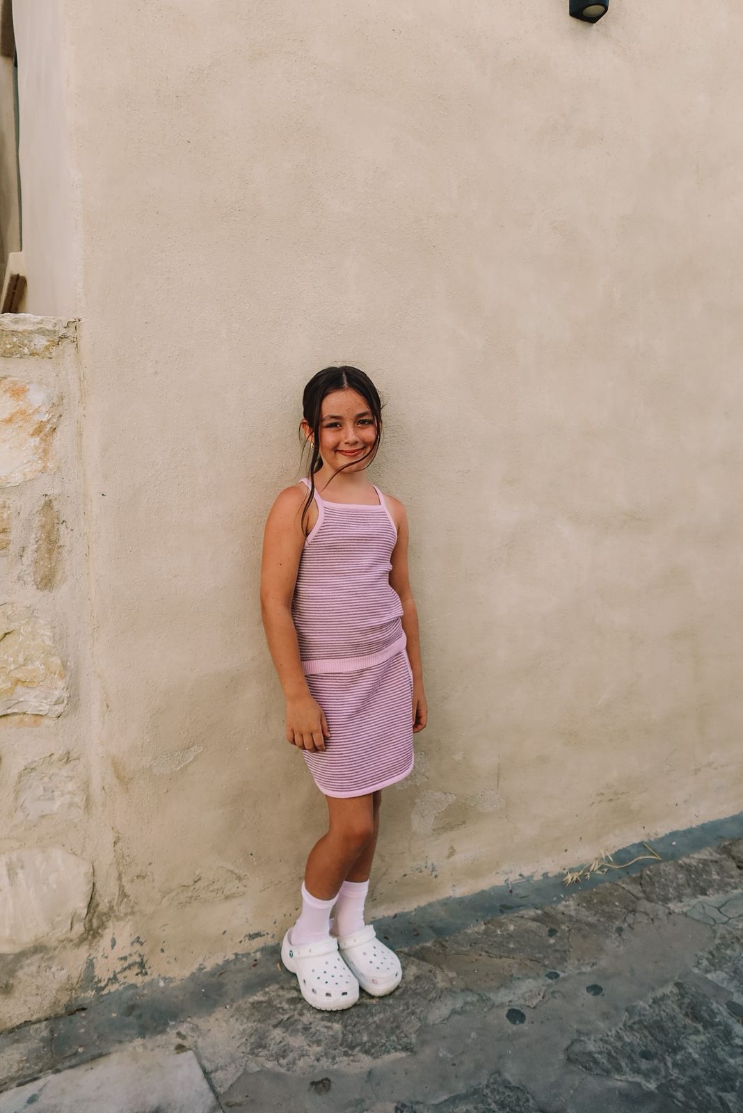 The Ikaria Set is crafted from a soft cotton-spandex blend that offers the perfect balance of comfort, stretch, and shape. Your little one can dress up or have as a casual everyday outfit.